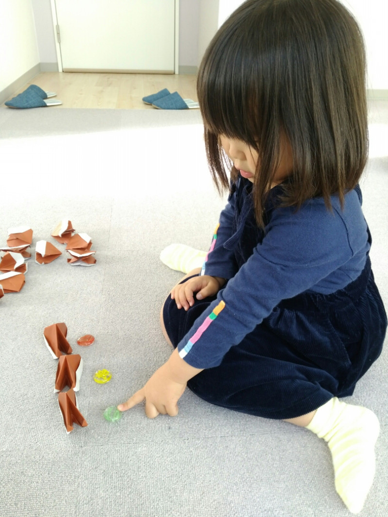 小さなおはじきでも上手に押さえられましたね。